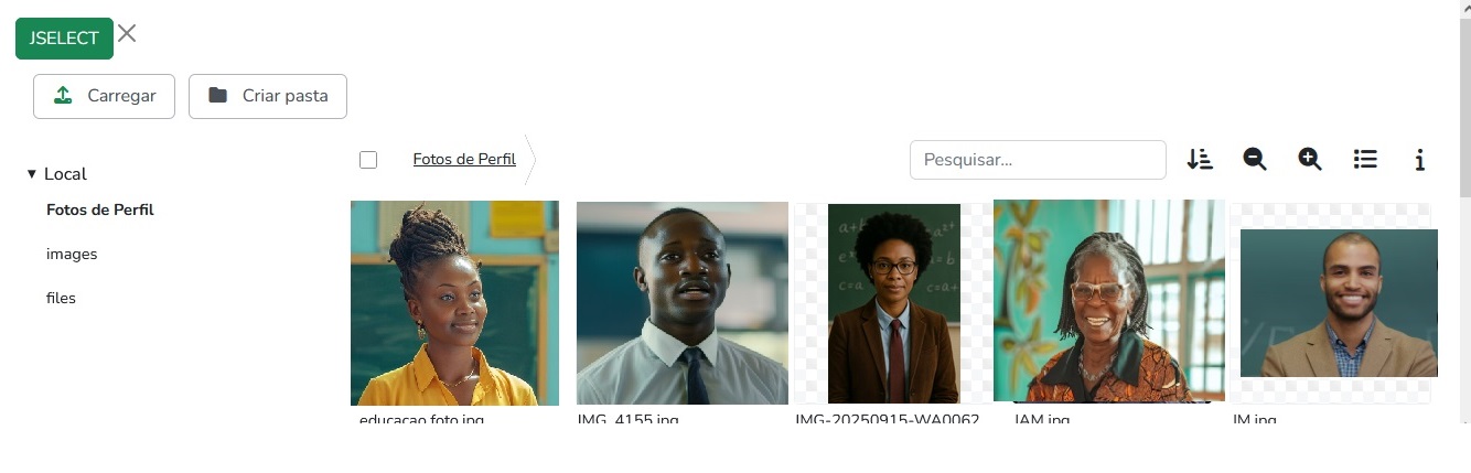 Pressione o botão Carregar e Escolha a sua fotografia no computador (formato JPG/PNG, preferencialmente quadrada).